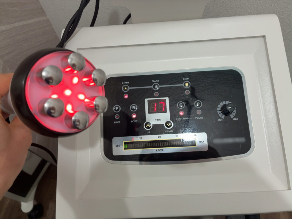 慣れてきて、パワーを少し上げたところ、ヘッドが赤く光りました!(Face用は青く光ります)