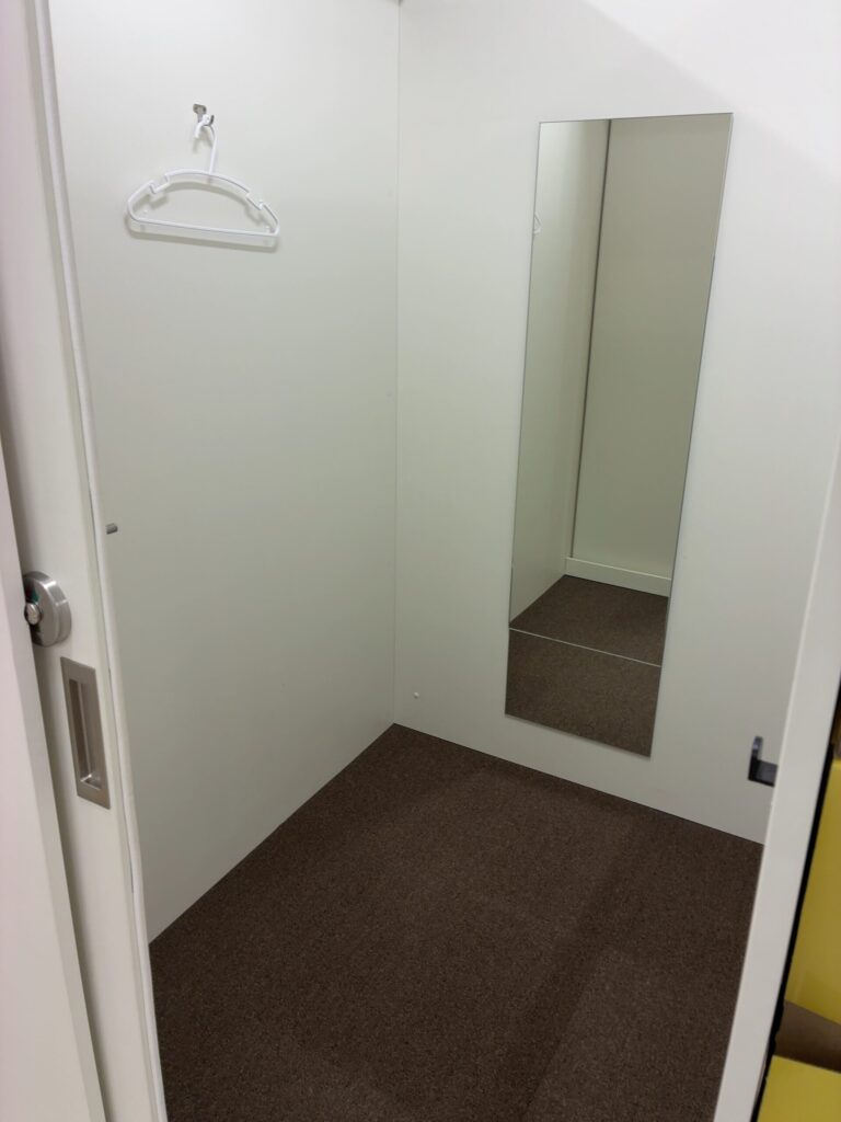 チョコザップ(chocoZAP)の更衣室は、男女兼用で内側から鍵をかけられるタイプのものです。